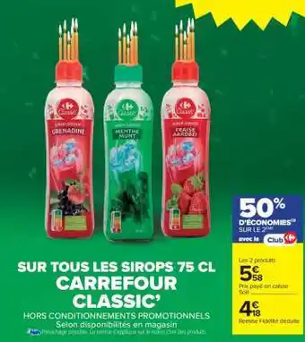 Carrefour Classic' Sirop 75 cl offres et promotions en ligne chez Carrefour Market