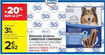 En plus de l'offre CARREFOUR COMPANINO Bâtonnets dentaires, Carrefour Market propose une large gamme de produits. Consultez le Catalogue Carrefour Market hebdomadaire pour découvrir les meilleures offres et promotions. En plus de CARREFOUR COMPANINO Bâtonnets dentaires, il y a aussi : Carrefour companino bâtonnets dentaires pour chien, Carrefour - bâtonnets dentaires & Carrefour - bâtonnets dentaires pour chien.