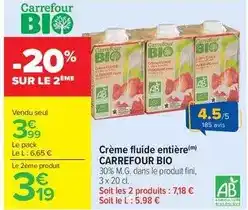 Carrefour - crème fluide entière offres et promotions en ligne chez Carrefour Market