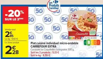 Actuellement en offre chez Carrefour Market : CARREFOUR EXTRA Plat cuisiné individuel micro-ondable ✅ Valable du 27-01 au 8-02.