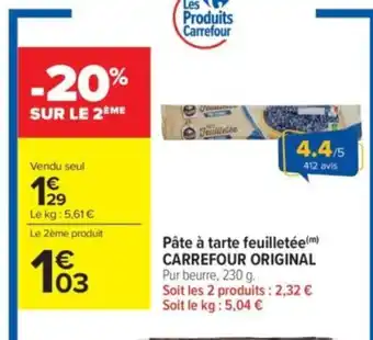 CARREFOUR ORIGINAL Pâte à tarte feuilletée : offres et promos Carrefour Market à découvrir