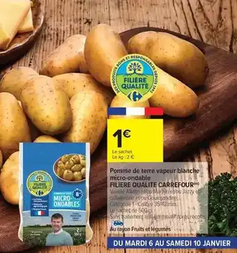 Actuellement en offre chez Carrefour Market : Carrefour - pomme de terre vapeur bianche micro-ondable filiere qualite ✅ Valable du 6-01 au 18-01.