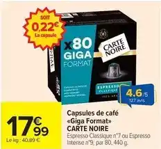 Actuellement en offre chez Carrefour Market : Carte noire - capsules de café ✅ Valable du 27-01 au 8-02.