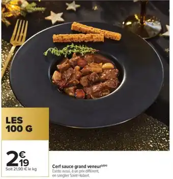 Actuellement en offre chez Carrefour Market : Cerf sauce grand veneur ✅ Valable du 19-12 au 31-12.