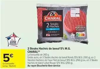 2 steaks hachés de boeuf 5% m.g charal offres et promotions en ligne chez Carrefour Market