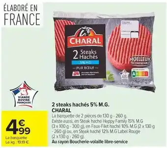 Charal - 2 steaks hachés : offres et promos Carrefour Market à découvrir