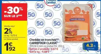 Actuellement en offre chez Carrefour Market : Cheddar en tranches carrefour classic ✅ Valable du 3-02 au 15-02.