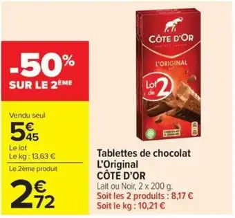 Actuellement en offre chez Carrefour Market : CÔTE D'OR Tablettes de chocolat L'Original ✅ Valable du 27-01 au 8-02.