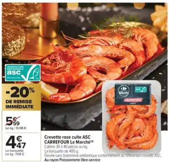 Actuellement en offre chez Carrefour Market : Crevette rose cuite asc carrefour le marché ✅ Valable du 19-12 au 31-12.