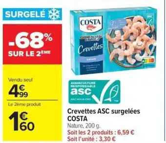 Offre Crevettes asc surgelées costa chez Carrefour Market