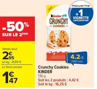 Actuellement en offre chez Carrefour Market : Crunchy cookies kinder ✅ Valable du 10-02 au 22-02.