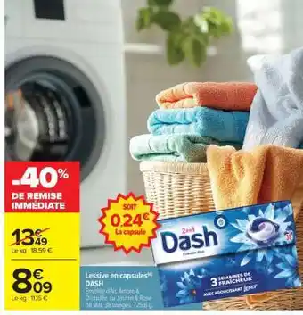 En plus de l'offre Dash 2en1, Carrefour Market propose une large gamme de produits. Consultez le Catalogue Carrefour Market hebdomadaire pour découvrir les meilleures offres et promotions. En plus de Dash 2en1, il y a aussi : Lessive liquide dash, Lessive liquide dash & Lessive en capsules dash.