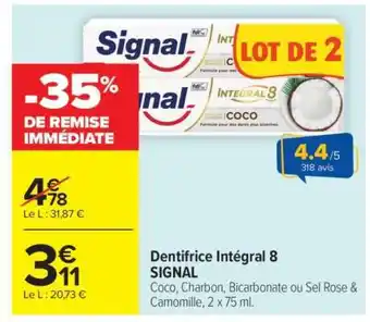 Offre Dentifrice Intégral 8 Signal chez Carrefour Market