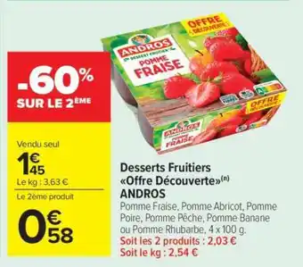Actuellement en offre chez Carrefour Market : Desserts fruitiers Offre Découverte ANDROS ✅ Valable du 17-03 au 29-03.