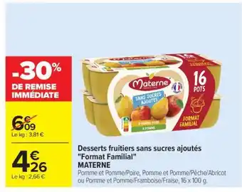 Y a-t-il une promotion sur Desserts fruitiers sans sucres ajoutés Format Familial MATERNE la semaine prochaine chez Carrefour Market ?