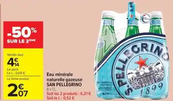 Le prix de l'offre Eau minérale naturelle gazeuse san pellegrino se trouve également en haut de la page, ainsi que la date à laquelle l'offre est disponible. Vous pouvez également vérifier les prix dans le Catalogue Carrefour Market actuel ou sur le site Internet de Carrefour Market. Les offres vous permettent d'acheter les produits Carrefour Market au prix le plus bas.