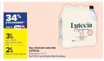Eau Minérale Naturelle 'Lutécia' : offres et promos Carrefour Market à découvrir