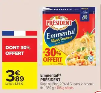 Actuellement en offre chez Carrefour Market : Emmental Président ✅ Valable du 20-01 au 2-02.