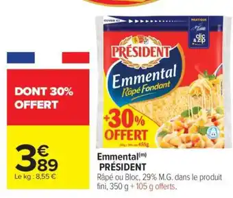 Actuellement en offre chez Carrefour Market : Emmental Président ✅ Valable du 3-03 au 15-03.