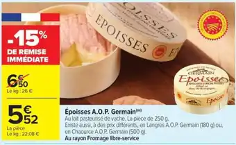 Actuellement en offre chez Carrefour Market : Époisses A.O.P. Germain ✅ Valable du 3-02 au 15-02.