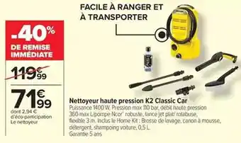 Actuellement en offre chez Carrefour Market : Facile - nettoyeur haute pression k2 classic car ✅ Valable du 24-02 au 15-03.