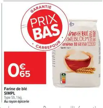 Actuellement en offre chez Carrefour Market : Farine de blé SIMPL ✅ Valable du 5-01 au 25-01.
