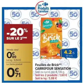Actuellement en offre chez Carrefour Market : Feuilles de Brick CARREFOUR SENSATION ✅ Valable du 27-01 au 15-02.