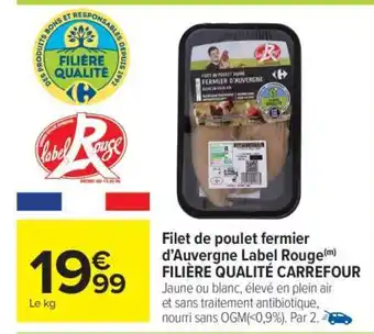 En plus de l'offre Filet de poulet fermier d’Auvergne Label Rouge, Carrefour Market propose une large gamme de produits. Consultez le Catalogue Carrefour Market hebdomadaire pour découvrir les meilleures offres et promotions. En plus de Filet de poulet fermier d’Auvergne Label Rouge, il y a aussi : Cuisse de poulet fermier d’Auvergne Label Rouge, Poulet FERMIER Label Rouge & POULET BLANC FERMIER LABEL ROUGE.