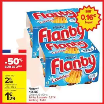 L'offre est disponible dans plusieurs magasins, vérifiez tous les produits pour obtenir le Flanby le moins cher. Si vous souhaitez savoir si l'article est en vente avec une plus grosse remise dans un autre magasin, consultez la catégorie 'Supermarché'. Ces offres pourraient aussi vous intéresser : Flanby caramel nestlé, Nestlé flanby & Nestlé - flanby vanille.