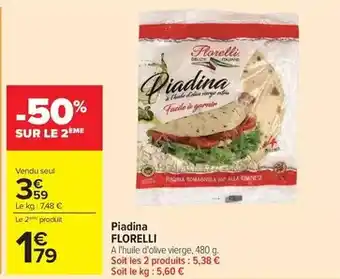 Actuellement en offre chez Carrefour Market : Florelli - piadina ✅ Valable du 14-04 au 26-04.