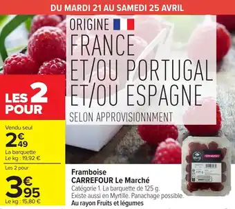 Actuellement en offre chez Carrefour Market : Framboise carrefour le marché ✅ Valable du 21-04 au 3-05.