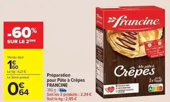 Actuellement en offre chez Carrefour Market : Francine - préparation pour pâte à crêpes ✅ Valable du 20-01 au 2-02.