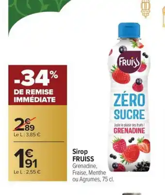 En plus de l'offre FRUISS Sirop, Carrefour Market propose une large gamme de produits. Consultez le Catalogue Carrefour Market hebdomadaire pour découvrir les meilleures offres et promotions. En plus de FRUISS Sirop, il y a aussi : Fruiss sirop, Sirop grenadine FRUISS & Teisseire - sirop.