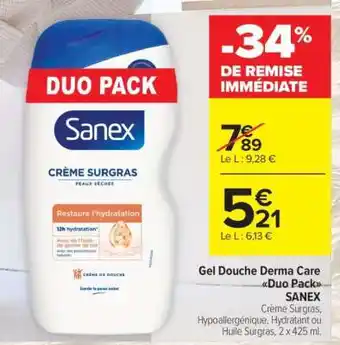 Gel Douche Derma Care Duo Pack SANEX : offres et promos Carrefour Market à découvrir