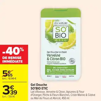 Actuellement en offre chez Carrefour Market : Gel douche so'bio etic ✅ Valable du 21-04 au 3-05.