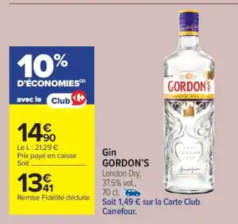 Actuellement en offre chez Carrefour Market : Gin Gordon's ✅ Valable du 24-02 au 8-03.