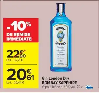 Actuellement en offre chez Carrefour Market : Gin London Dry BOMBAY SAPPHIRE ✅ Valable du 24-02 au 8-03.