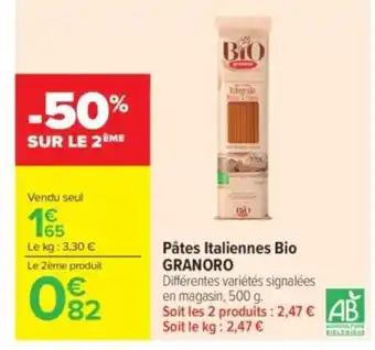Offre GRANORO Pâtes Italiennes Bio chez Carrefour Market