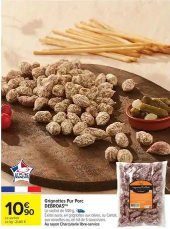 Actuellement en offre chez Carrefour Market : Grignottes pur porc debroas ✅ Valable du 10-02 au 22-02.