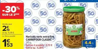Actuellement en offre chez Carrefour Market : Haricots verts extra-fins carrefour classic ✅ Valable du 3-02 au 15-02.
