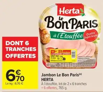 Offre HERTA Jambon Le Bon Paris chez Carrefour Market