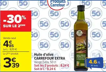 En plus de l'offre Huile d'olive carrefour extra, Carrefour Market propose une large gamme de produits. Consultez le Catalogue Carrefour Market hebdomadaire pour découvrir les meilleures offres et promotions. En plus de Huile d'olive carrefour extra, il y a aussi : Carrefour extra huile d'olive, Carrefour - huile d'olive extra & Huile d'olive vierge extra CARREFOUR EXTRA.