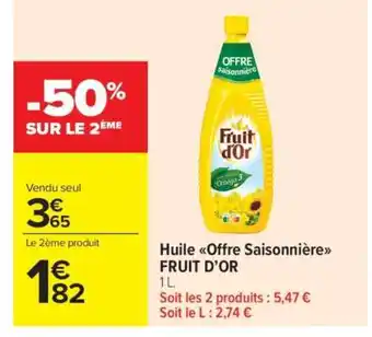 Offre Huile Offre Saisonnière FRUIT D’OR chez Carrefour Market