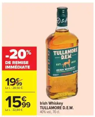 Actuellement en offre chez Carrefour Market : Irish Whiskey TULLAMORE D.E.W ✅ Valable du 3-03 au 15-03.