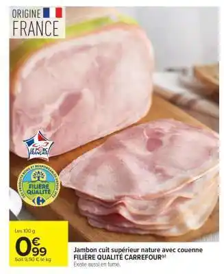Offre JAMBON CUIT SUPÉRIEUR NATURE AVEC COUENNE chez Carrefour Market