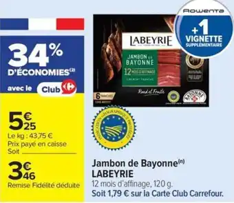 Offre Jambon de bayonne labeyrie chez Carrefour Market