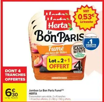 Jambon Le Bon Paris Fumé : offres et promos Carrefour Market à découvrir