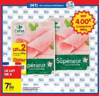Jambon Le Supérieur Carrefour Extra offres et promotions en ligne chez Carrefour Market