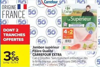 Offre Jambon supérieur filière qualité carrefour extra chez Carrefour Market