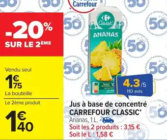 Offre Jus à base de concentré carrefour classic chez Carrefour Market